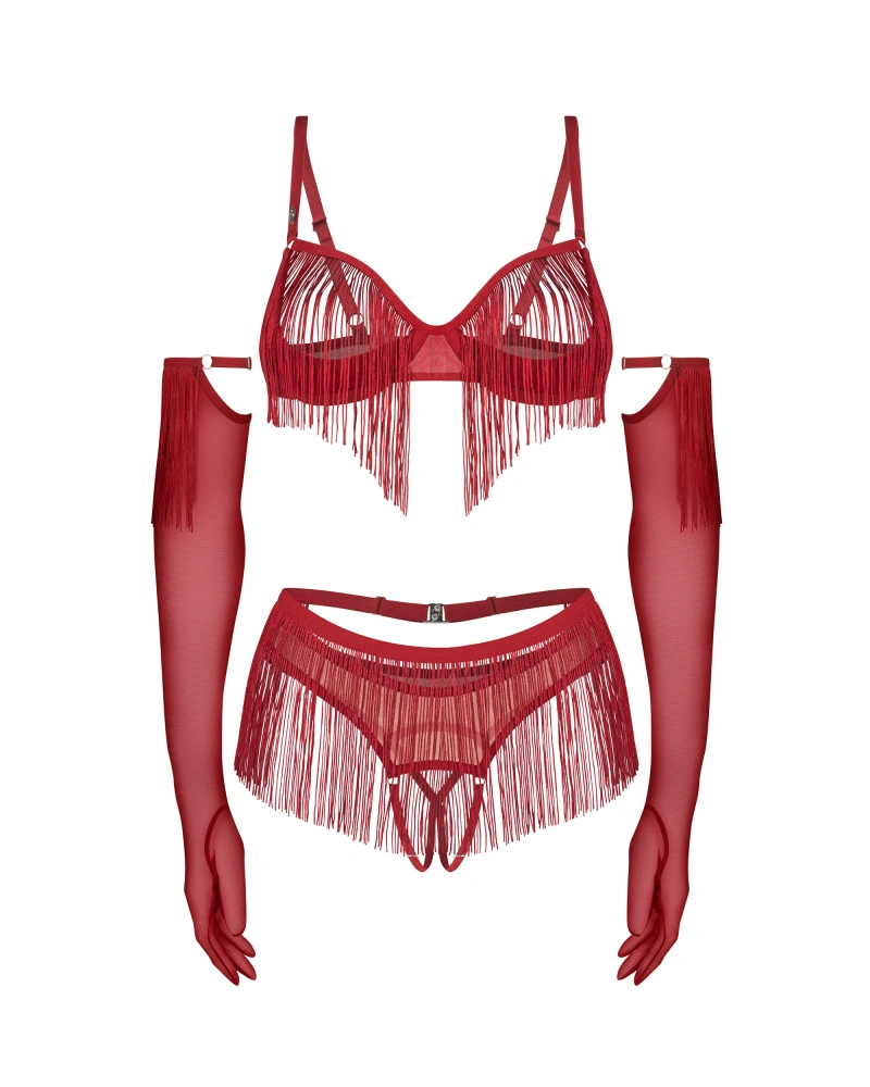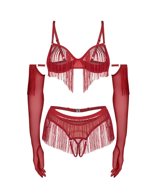 Otwarty, czerwony komplet z rękawiczkami