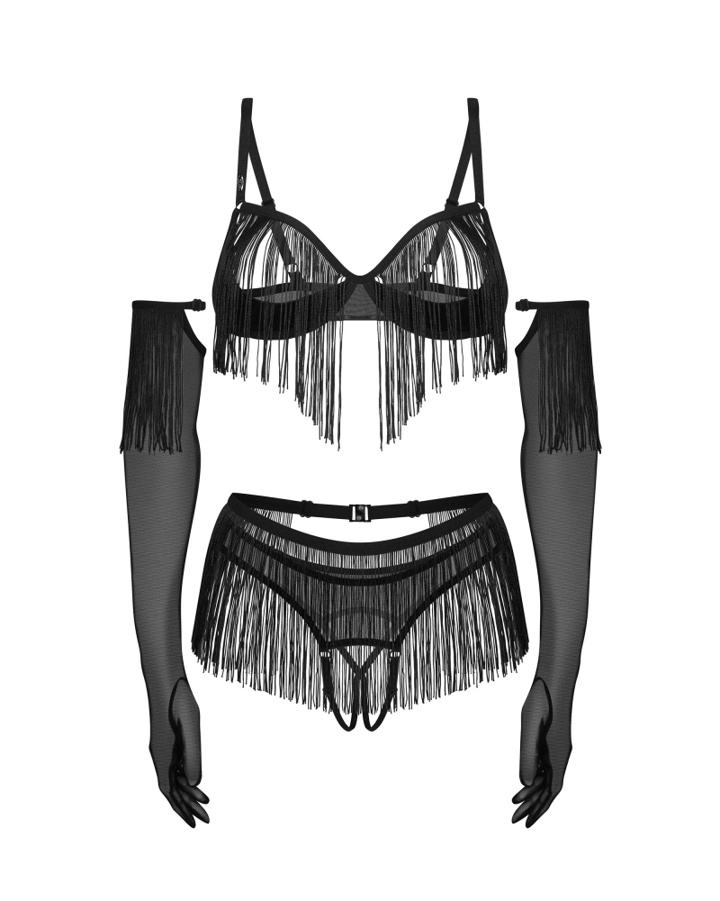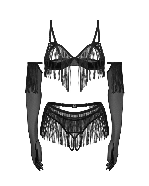 Czarny, otwarty komplet z rękawiczkami