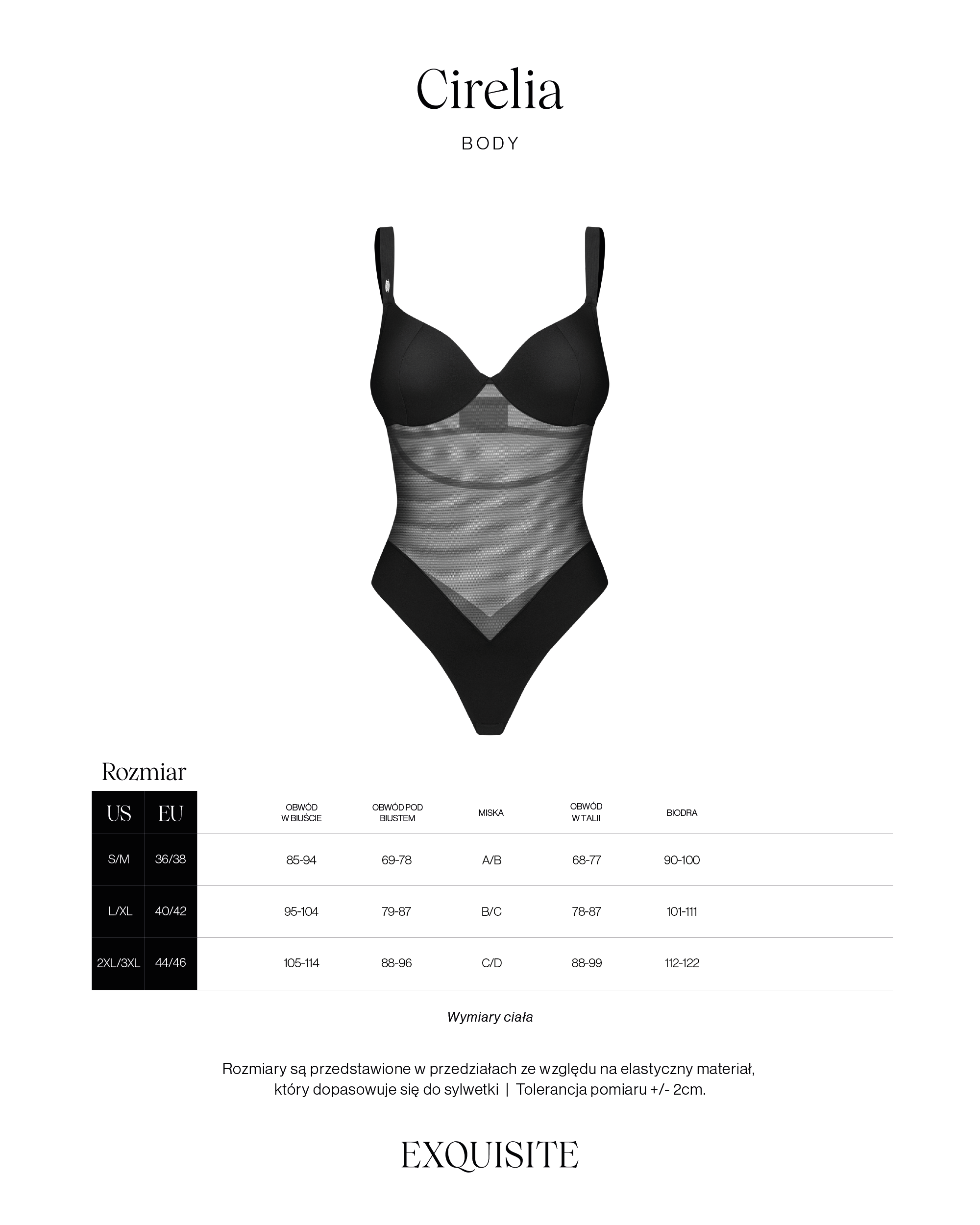 Nowoczesne body o dopasowanym kroju łączy transparentną siateczkę z elastyczną tkaniną. Miseczki subtelnie modelują biust, a półprzezroczysty panel w talii optycznie wysmukla sylwetkę. Geometryczne linie i matowe wykończenia podkreślają minimalistyczny, zmysłowy charakter tego projektu.