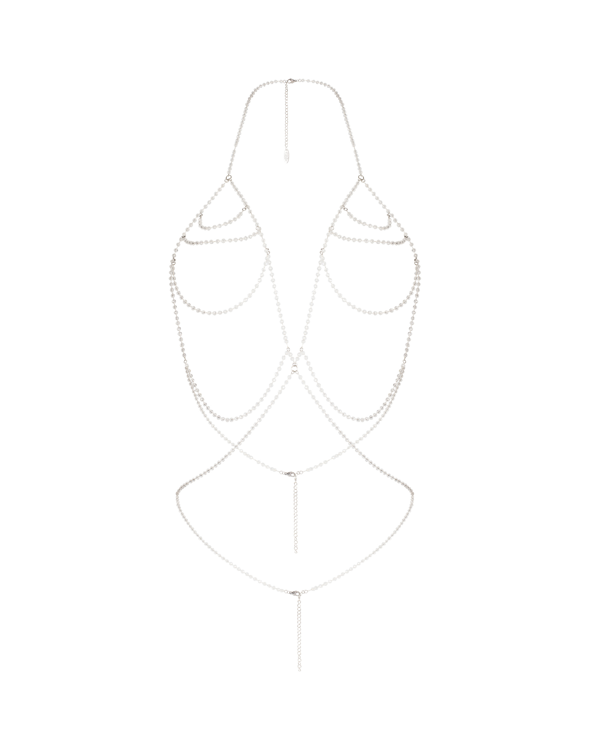 Lyxa to wyjątkowa biżuteria na ciało. Delikatne, szklane koraliki oplatają sylwetkę przyciągając wzrok srebrnymi akcentami i misternym układem łańcuszków. Regulacja przy szyi i w talii pozwala idealnie dopasować ten model do swojej sylwetki – czy to jako zmysłowe dopełnienie stylizacji, czy odważny element solo. To, jaką wersję wybierzesz, zależy tylko od Twojej wyobraźni.