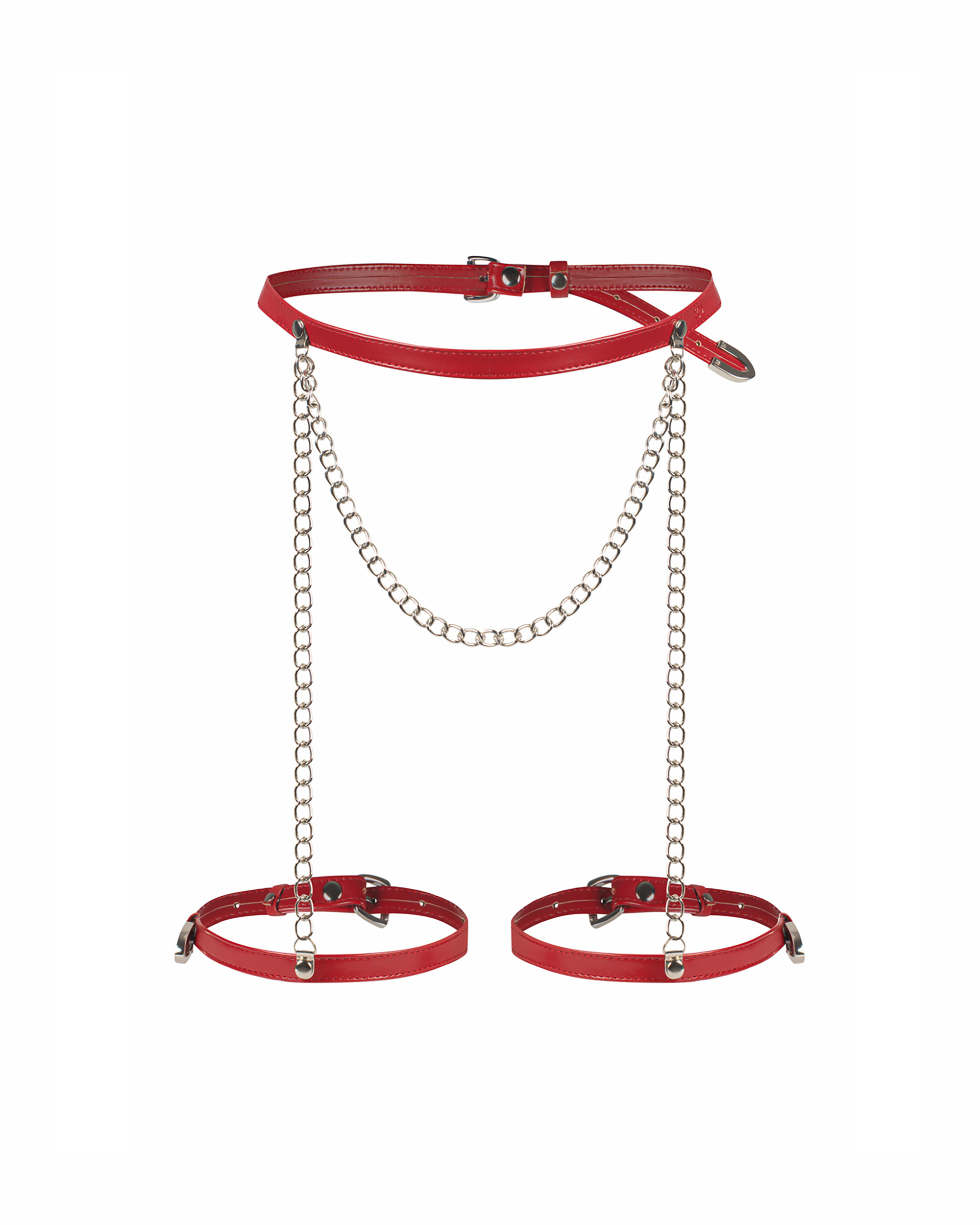 Ekskluzywny pas z łańcuszkami, który rozpala wyobraźnię i kusi zmysły. Oplata on talię i uda, tworząc intrygującą konstrukcję ze srebrnych łańcuchów, które poruszają się z każdym ruchem ciała. To element garderoby, który świetnie podkreśla kobiecą siłę i zmysłowość. Dzięki regulowanym paskom możesz dopasować pas do swojej sylwetki, a wysokiej jakości wykończenia sprawiają, że całość prezentuje się nie tylko drapieżnie, ale i niezwykle elegancko.