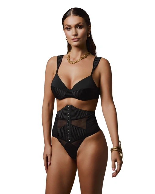 Komplet: biustonosz, pas z fiszbinami i stringi